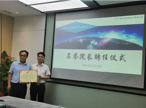 2020年05月18日,廣西華業(yè)建筑設(shè)計有限公司名譽(yù)院長——張信貴教授聘任儀式在華業(yè)建筑設(shè)計有限公司會議室隆重舉行,華業(yè)集團(tuán)董事長龍其生、副總裁兼華業(yè)建筑設(shè)計公司總經(jīng)理龐樹玉應(yīng)邀出席本次活動并講話。  &nb..
